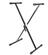 Aluminium-Tastaturständer in X-Form, passend für alle gängigen Tastaturtypen. Höhenverstellbar. Patentierter Schnellspanner CROCODILE für sofortigen Positionswechsel, Gummi-Kontaktflächen. Höhenverstellbar im Bereich von 170–970 mm, maximale Belastung 60 kg. Die Breite der Oberseite beträgt 39 cm. Schwarze Farbe.
